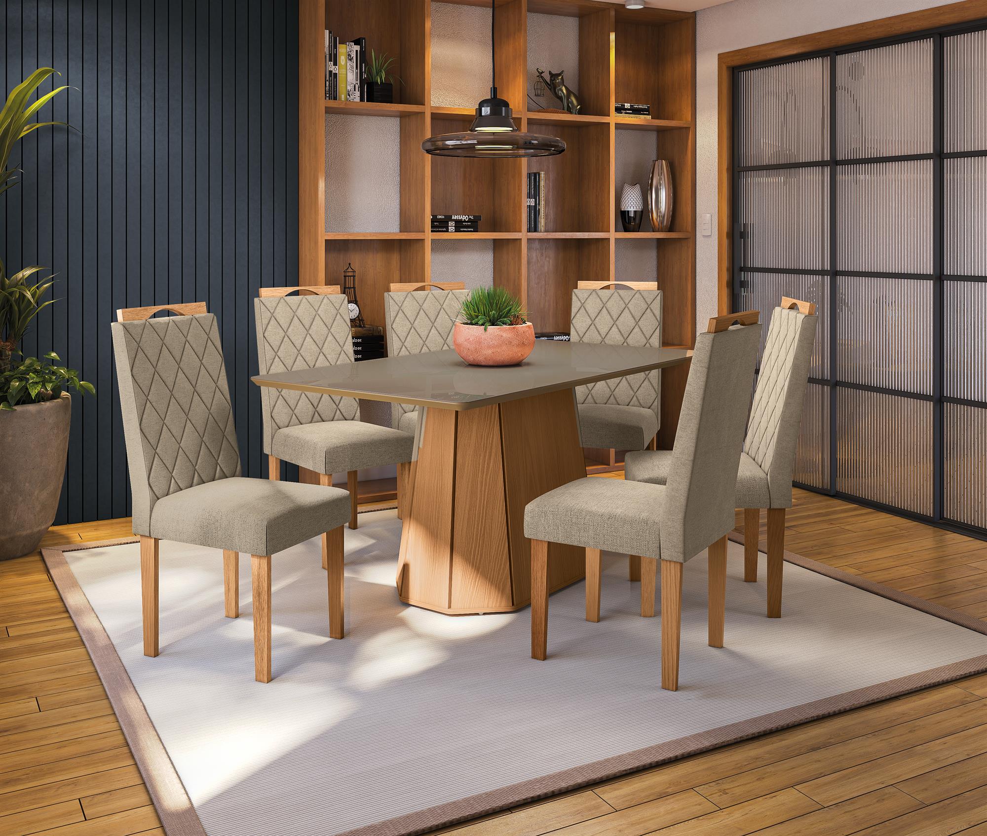 Conjunto Hara c/ tampo e 6 Cadeiras Luna