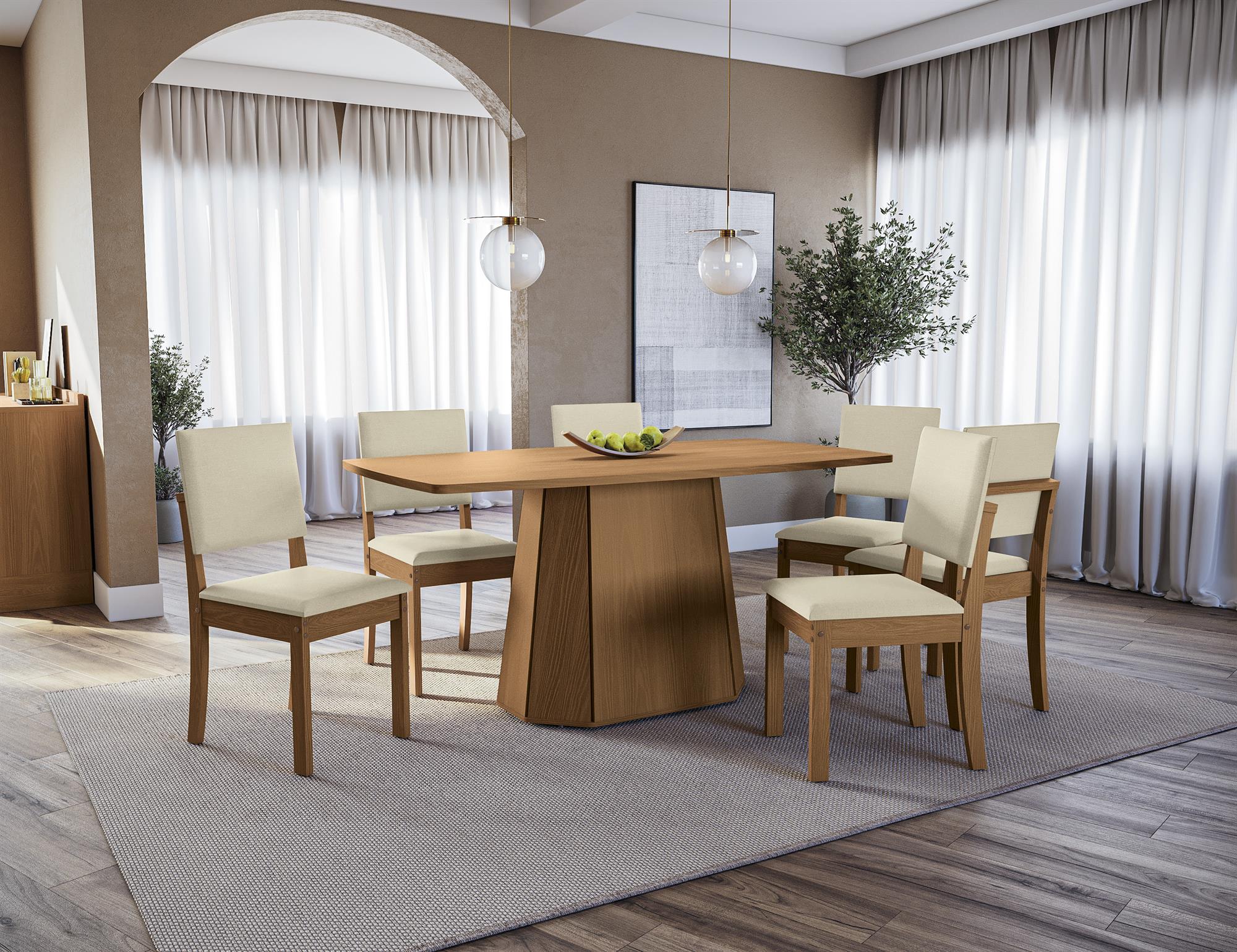 Conjunto Hara c/ tampo e 6 Cadeiras Luna