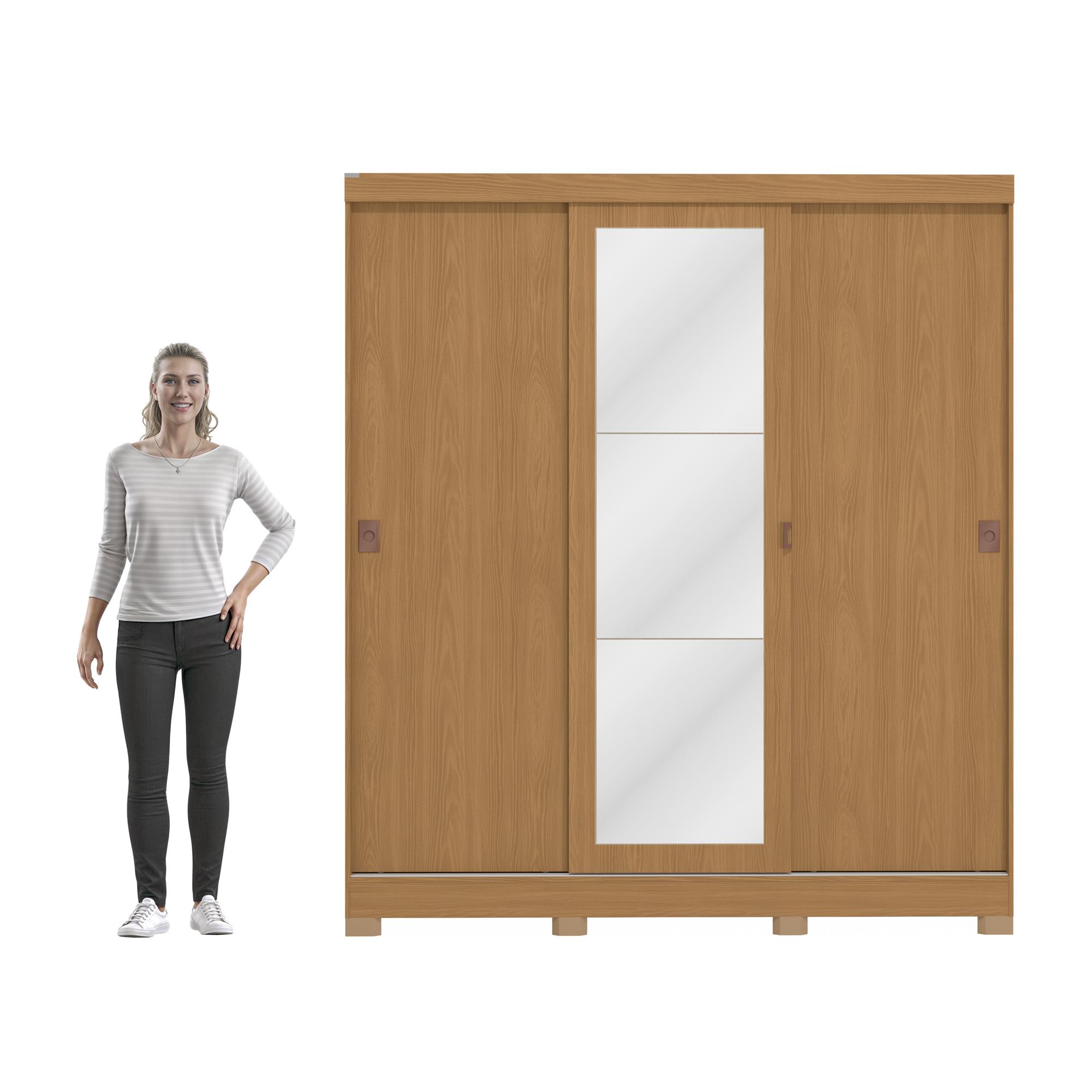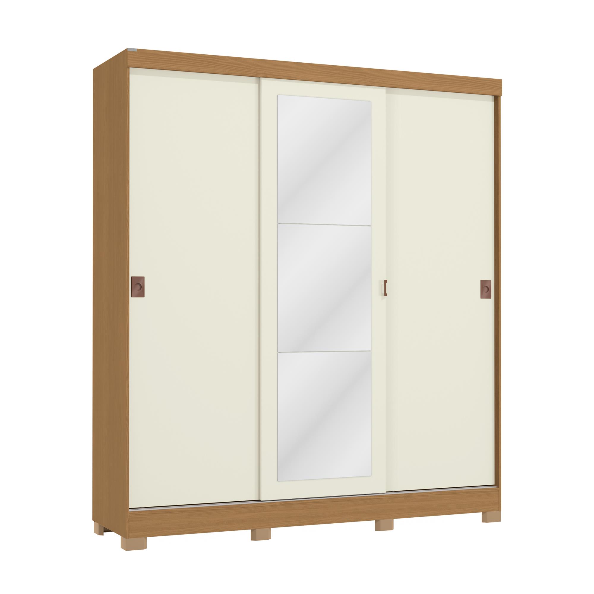 Roupeiro 3 portas de correr | 2 gav | com espelho e pés