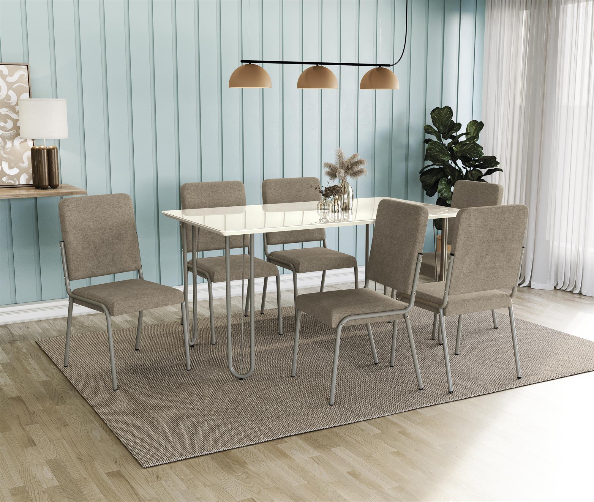 Conj. Mesa Constanza c/ tampo e 6 Cadeiras Genebra