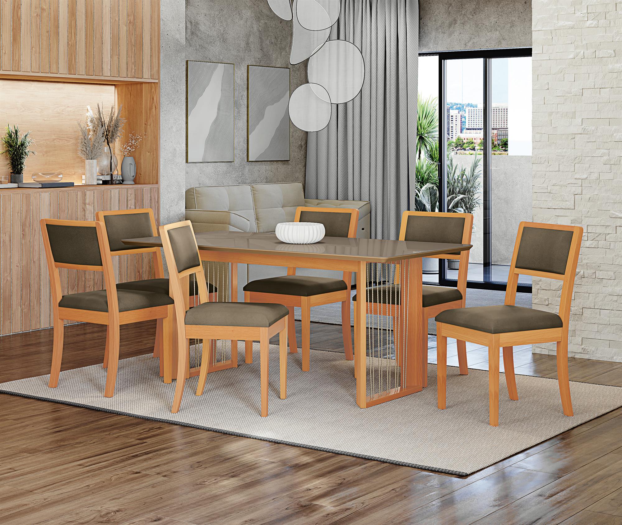 Conj Mesa Eva c/ tampo e 6 Cadeiras Alice