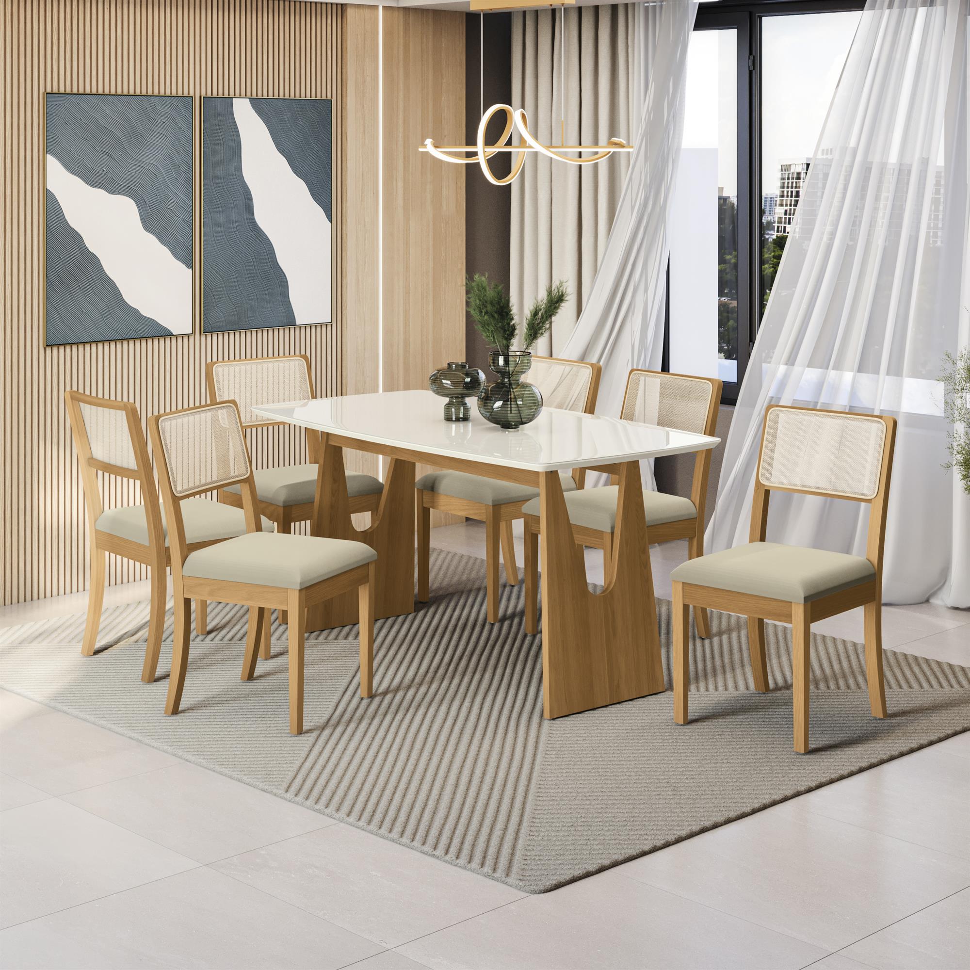 Conj Mesa Mila c/ tampo e 8 Cadeiras Lola