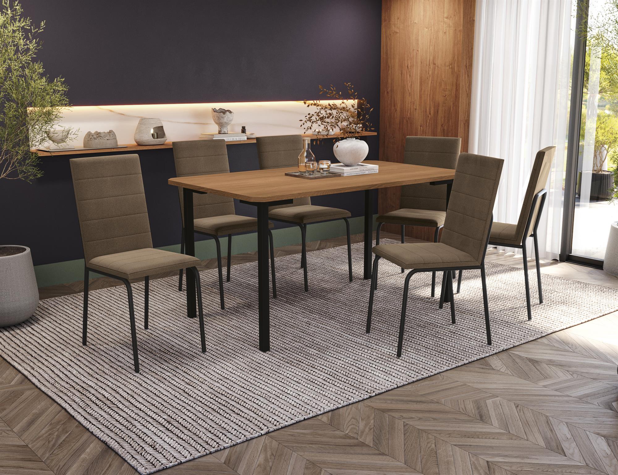Conj. Mesa Santorini c/ tampo e 6 Cadeiras Amsterdã