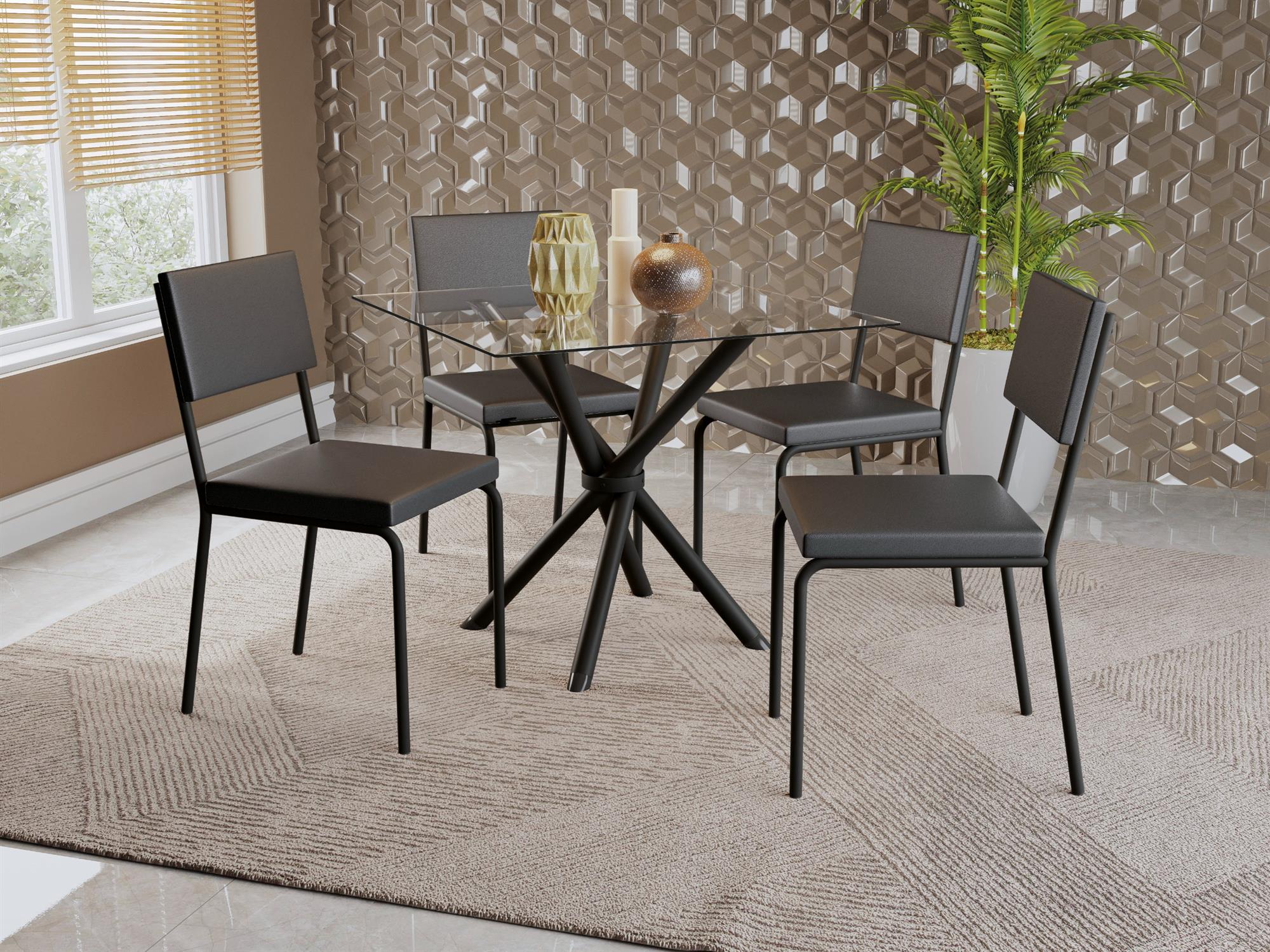 Conj. Mesa Volga c/ tampo e 4 Cadeiras Zaria