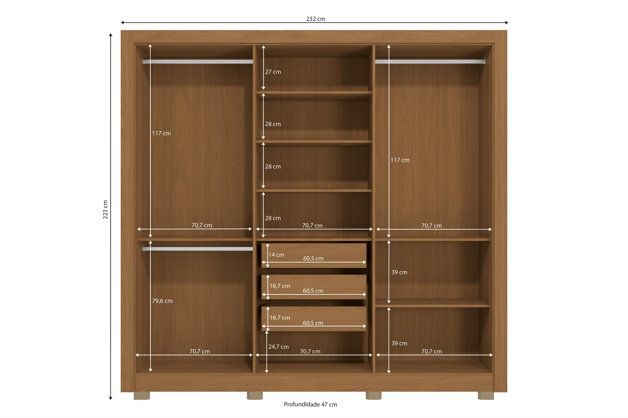 Roupeiro 6 portas | 3 gavetas | com pés | espelho