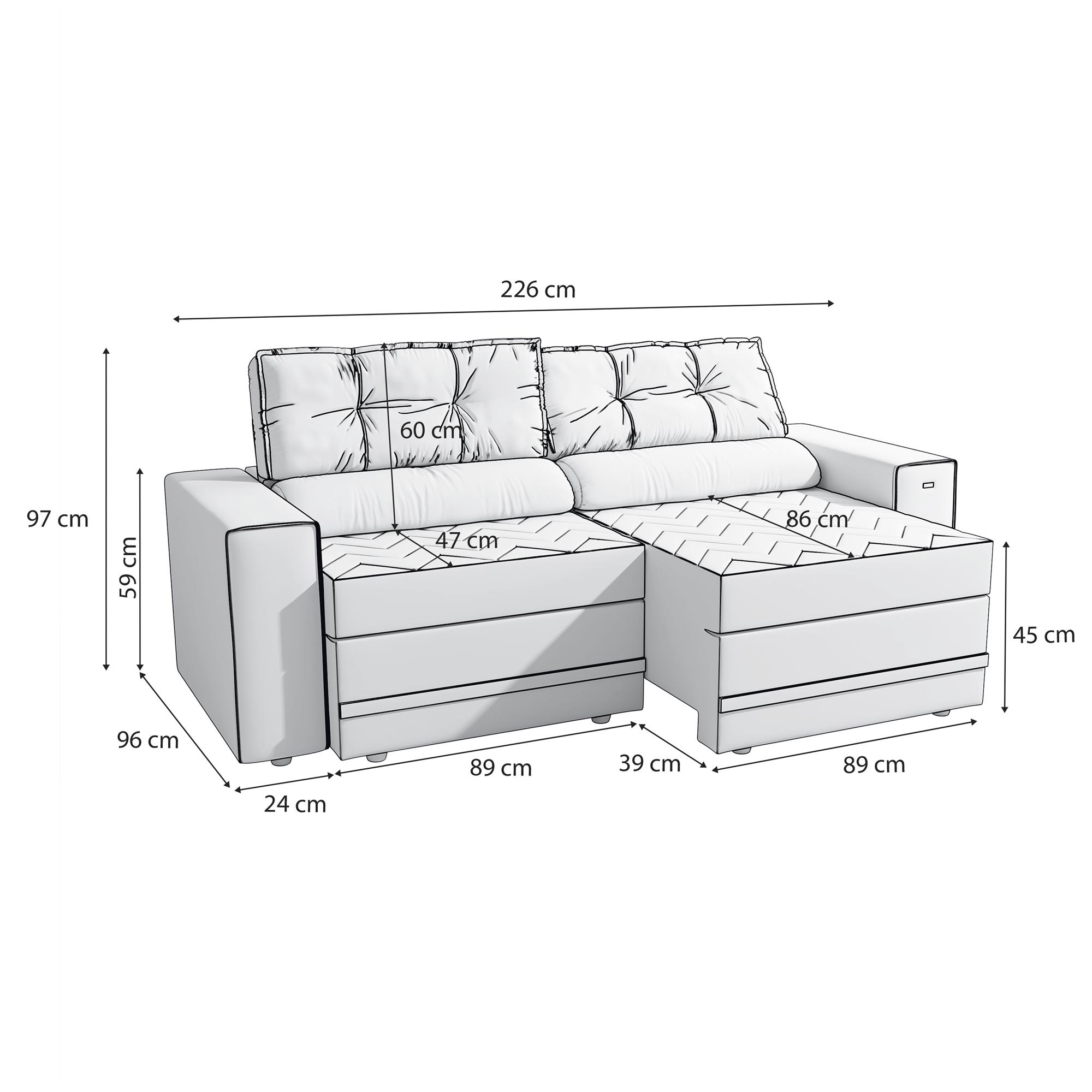 - Largura: 226 cm