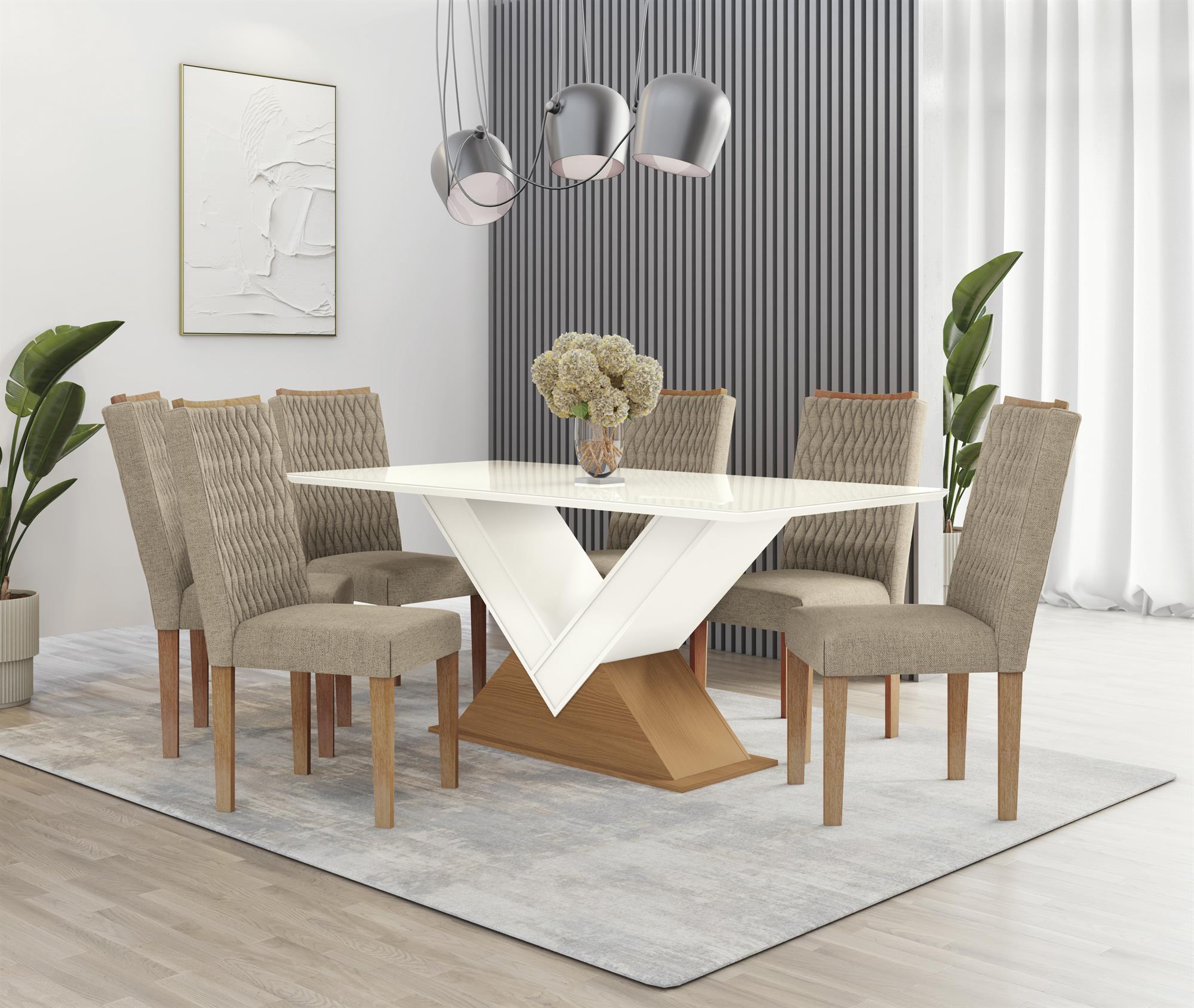 Conj Mesa Amora c/ tampo e 6 Cadeiras Aura