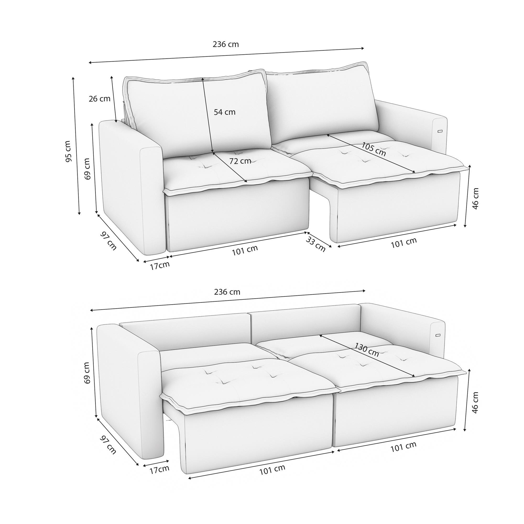 - Largura: 236 cm