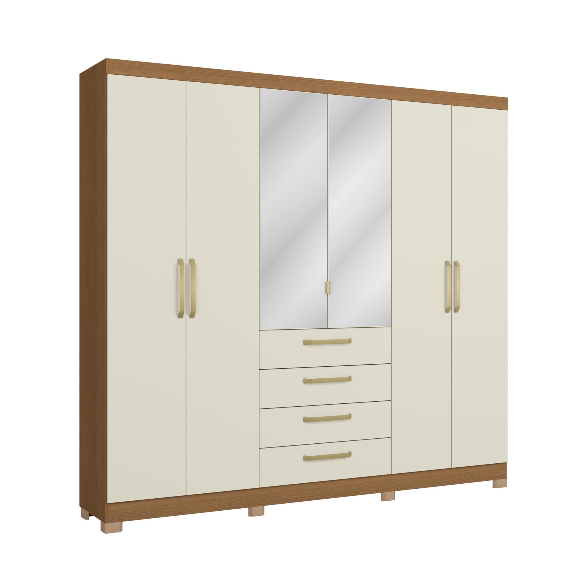 Roupeiro 6 portas | 4 gav. | com pés e espelho
