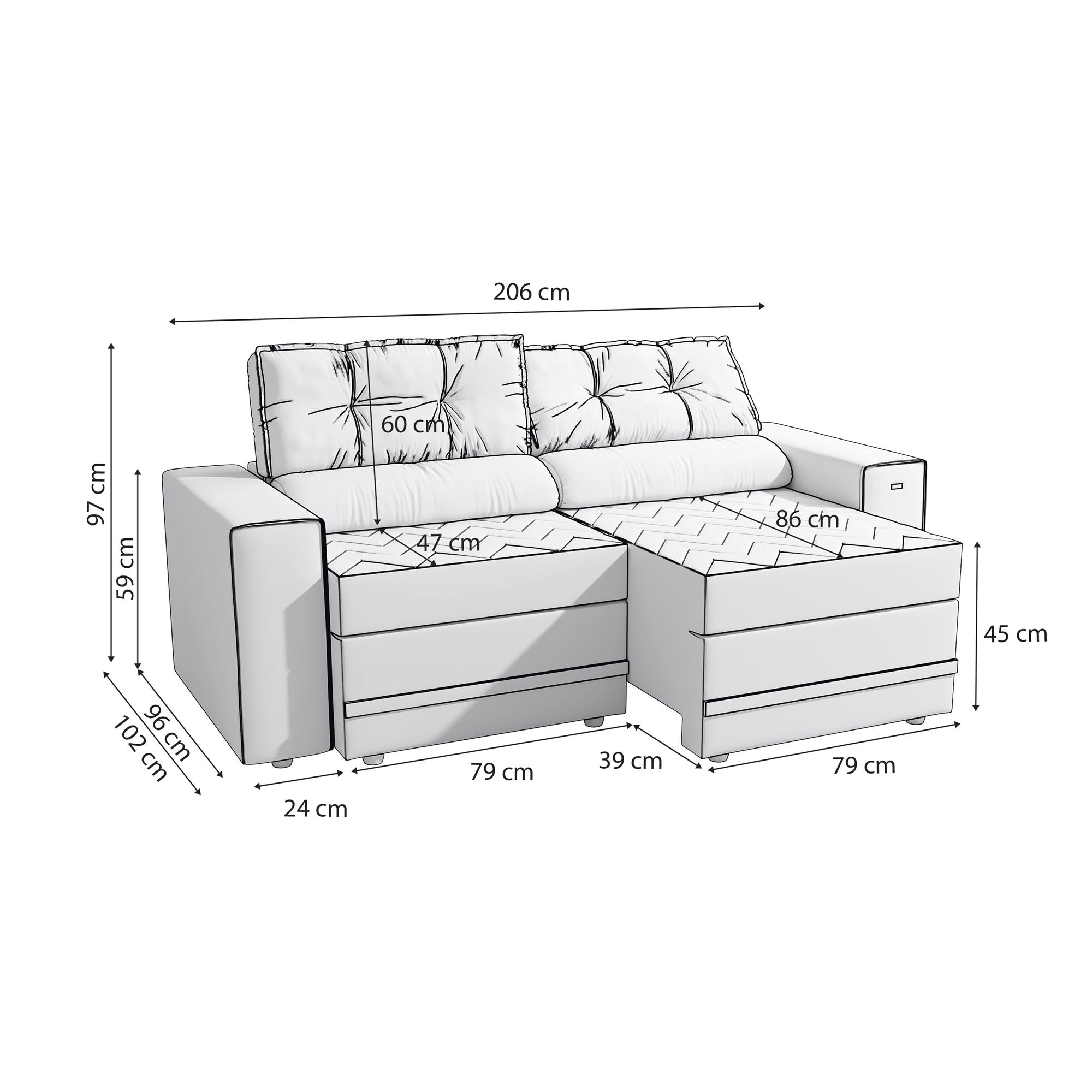 - Largura: 206 cm
